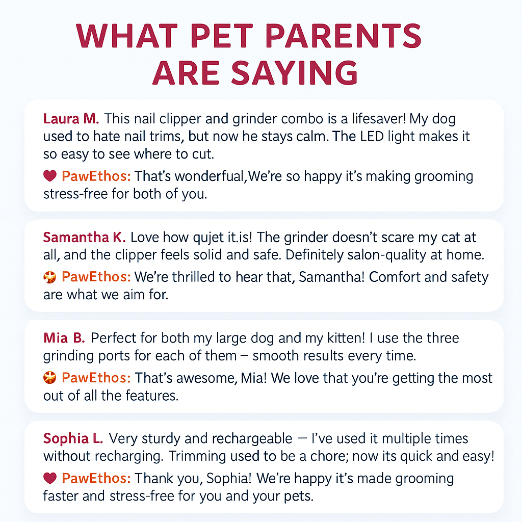 Your dog or cat stays calm, safe, and stress-free throughout the process, ending with perfectly groomed nails.